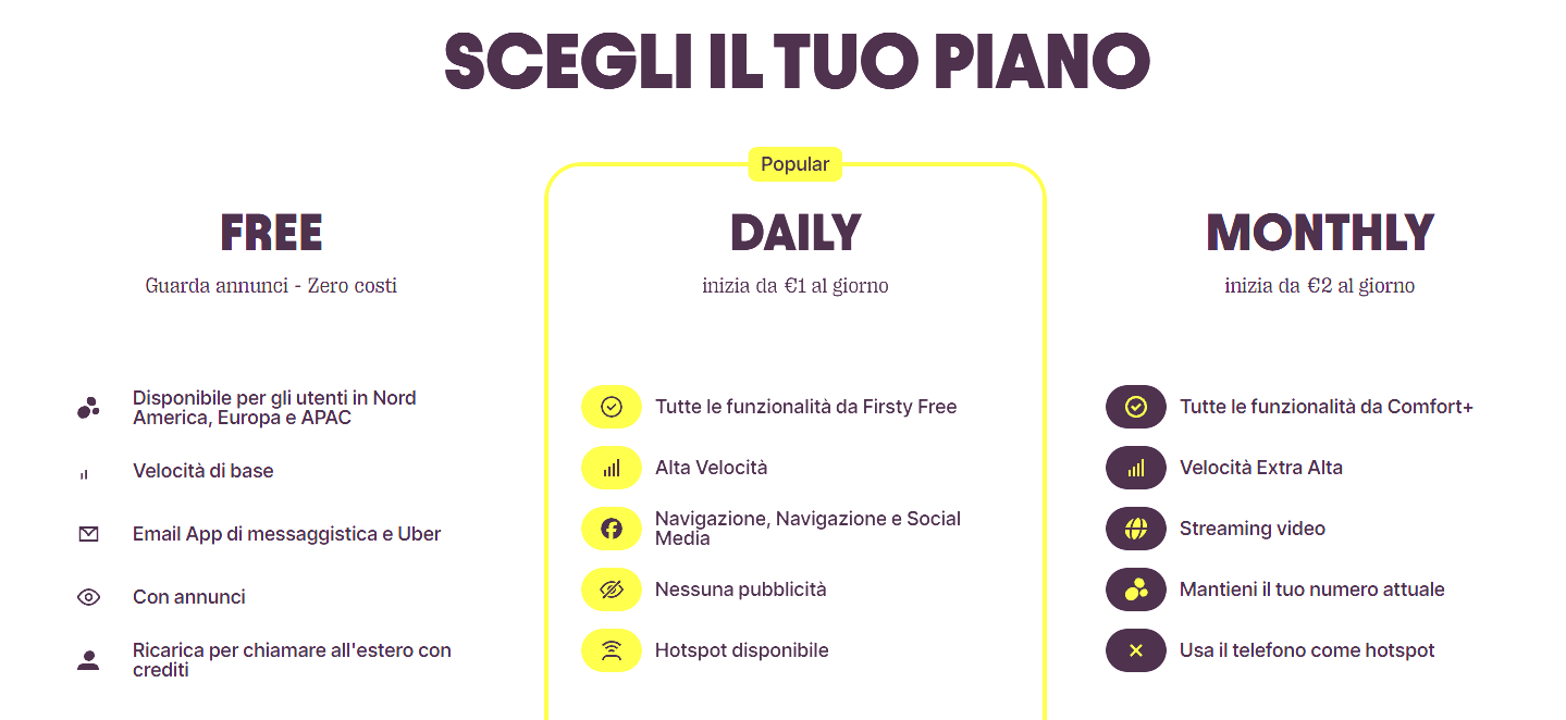 Se vuoi qualcosa di più performante, Firsty offre due piani premium.